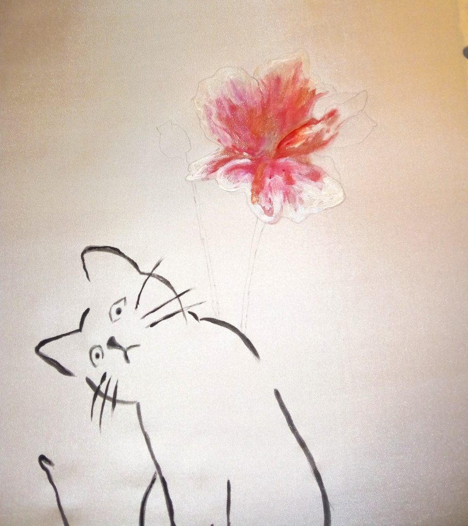 Depuis plus de 30 ans, je me passionne pour la peinture sur soie. J’ aime voir la façon dont fuse le tissu. Au grés du temps et des nouvelles peintures, le trait devient de plus en plus précis et net.