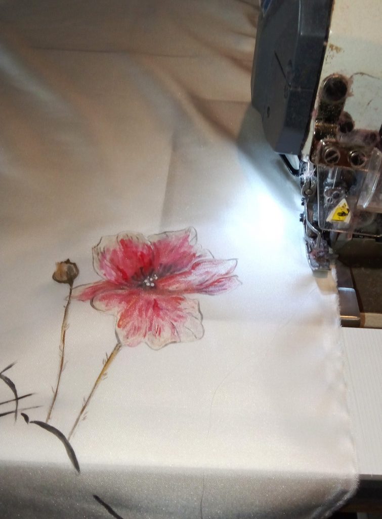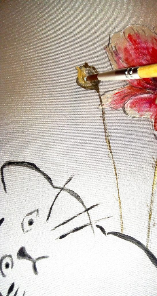 Je vous laisse découvrir en image les différentes étapes d’une peinture sur un foulard.