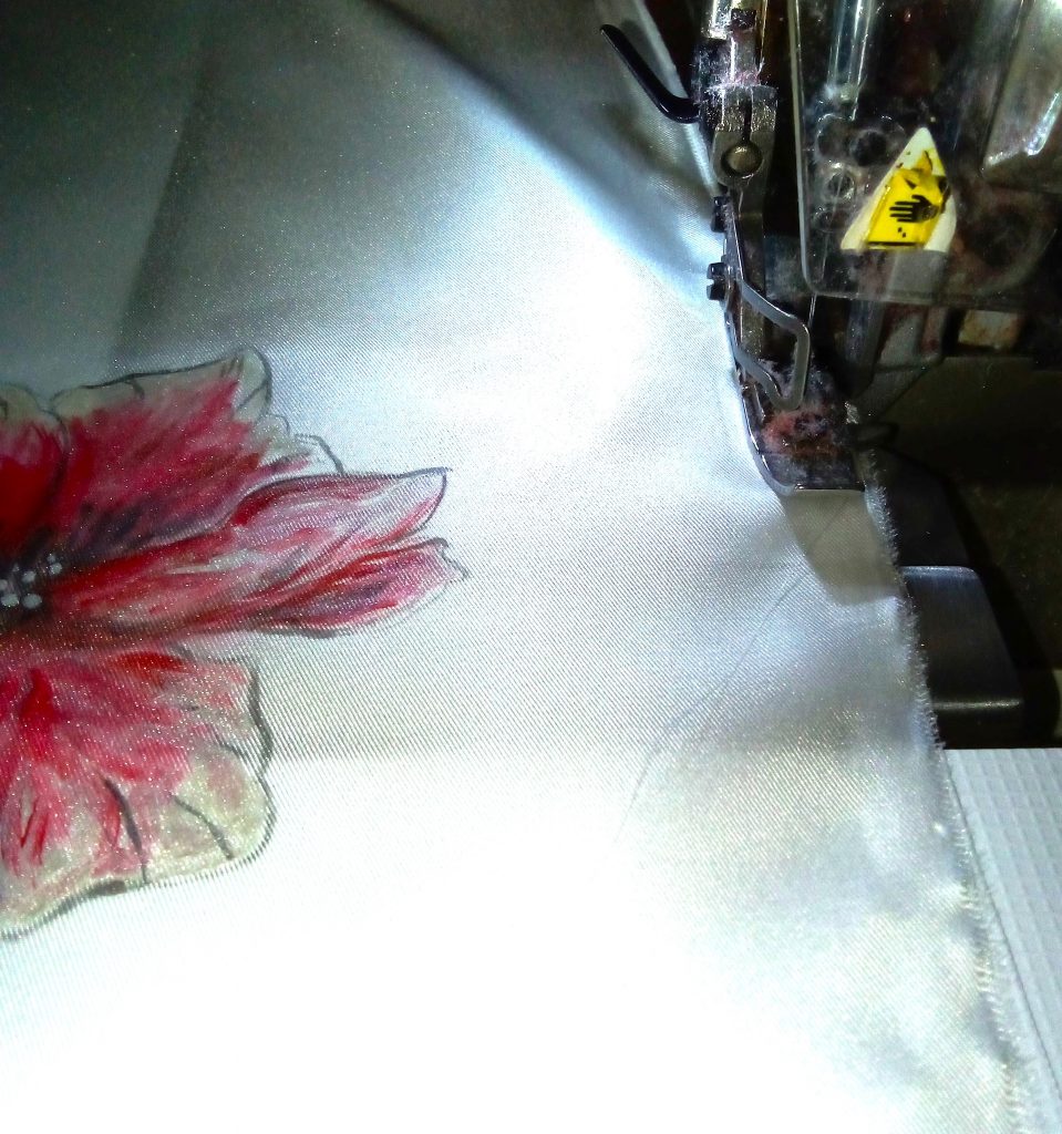 Les tissus en provenance des fabricants lyonnais sont transformés dans notre atelier .